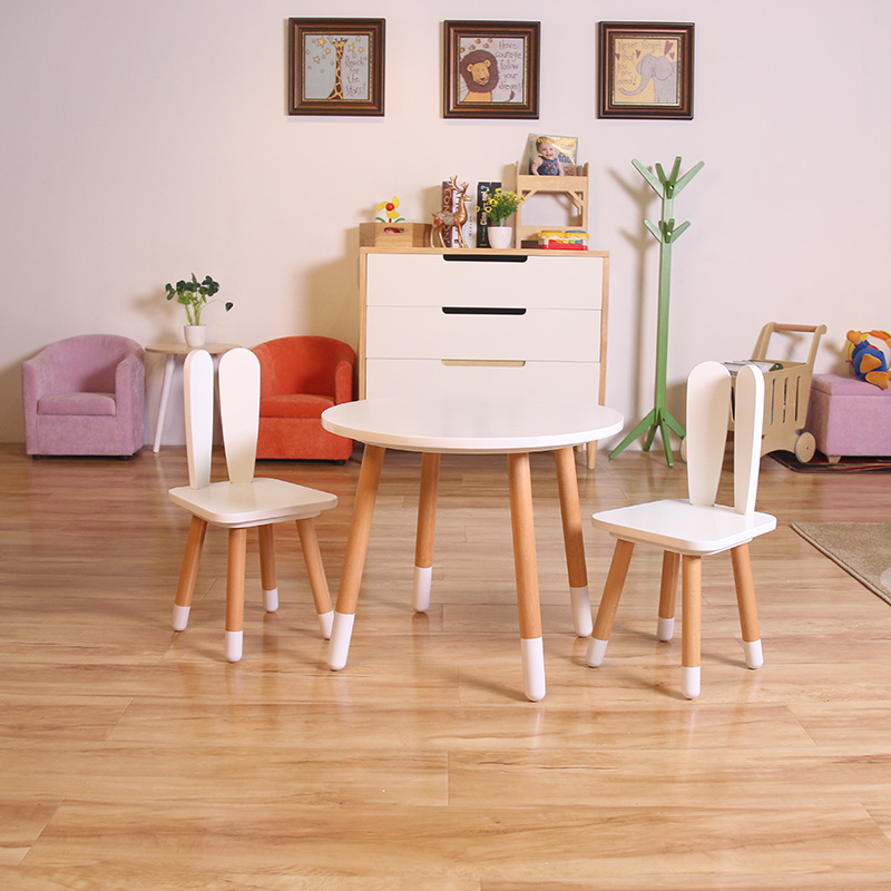 Nashow LMMS-041 Little Bunny Wooden Kid Round Table with Chairs