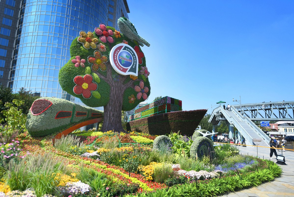 A floral decoration marking the 2024 Summit of the Forum on China-Africa Cooperation (FOCAC) is pictured in Dongcheng district of Beijing, capital of China on Aug 29. [Photo/Xinhua]