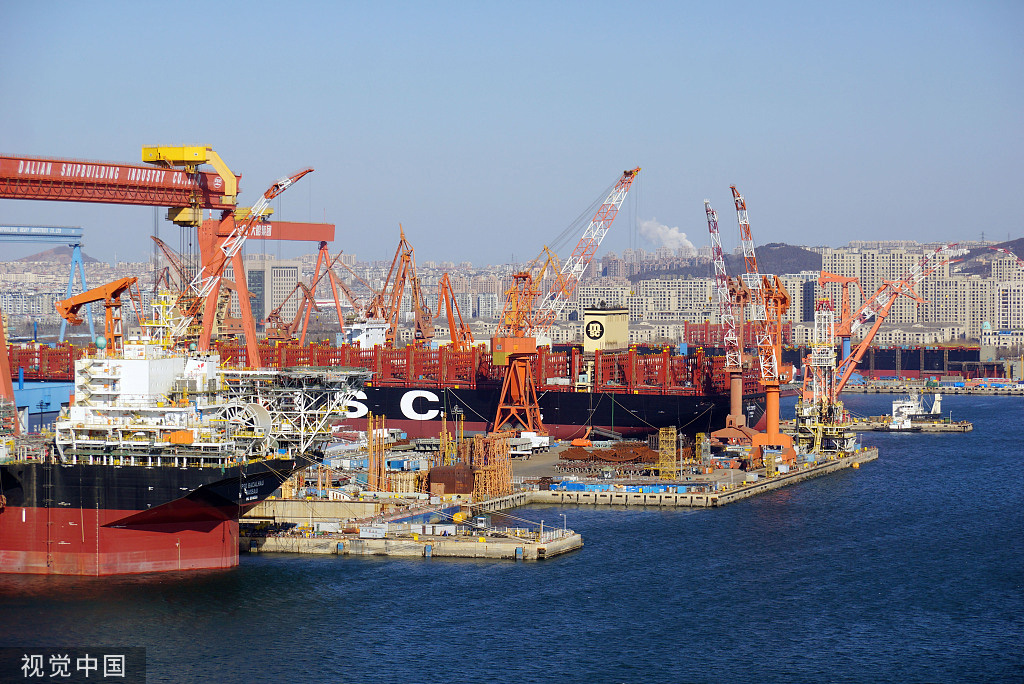 The construction site of shipbuilding in Dalian, Liaoning province on Feb 24, 2023. [Photo/VCG]