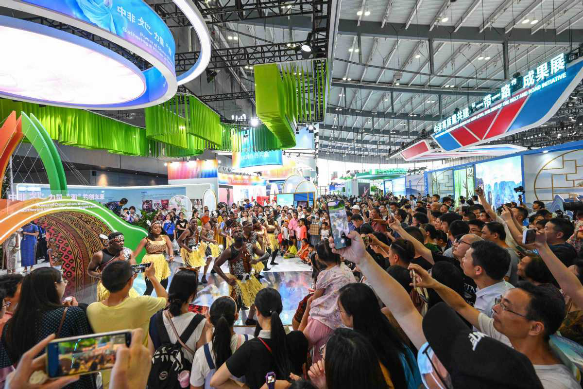 Visitors watch a live performance during the 3rd China-Africa Economic and Trade Expo in Changsha, Hunan province, on July 1.