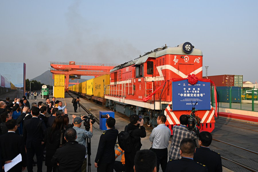HANGZHOU -- A China-Europe freight train departed from the city of Yiwu in East China's Zhejiang province on Saturday morning for Madrid, Spain, marking the 10,000th trip of China-Europe freight trains this year.
